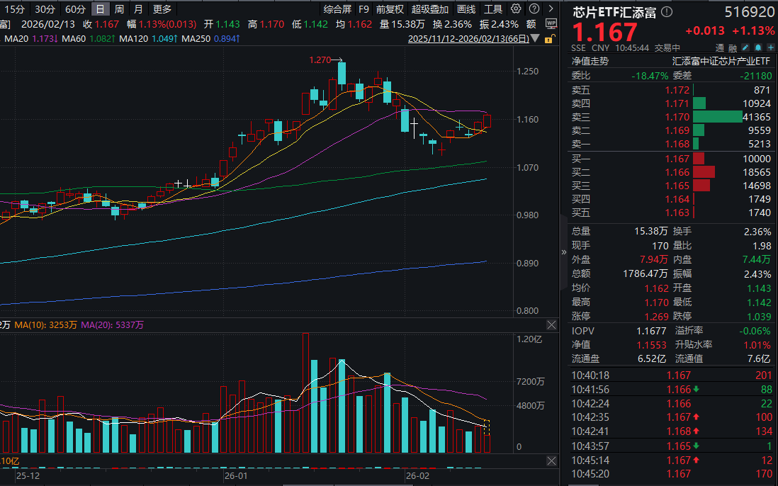 芯片ETF汇添富(516920)放量涨超1%,盘中成交额已超1700万元!